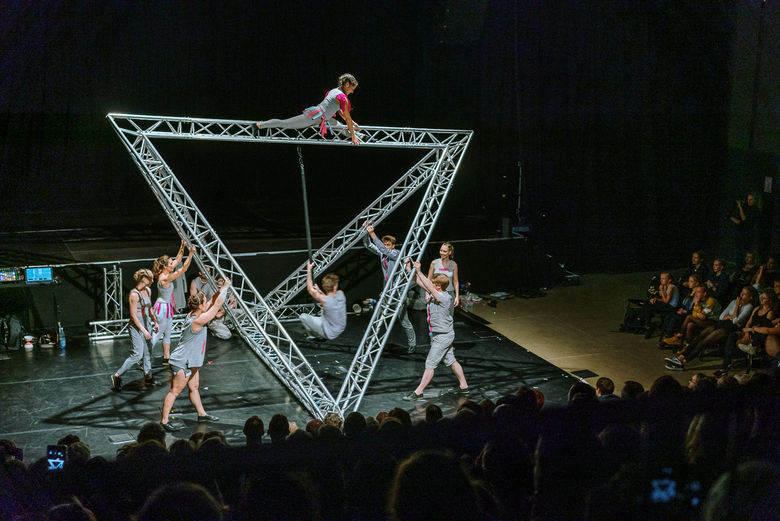 Highlight ist das 5m hohe Tetraeder, dessen Einzelteile während der Show zusammengebaut und artistisch genutzt werden.